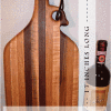 This unique style is a favorite of wine enthusiasts as well as those who appreciate a special presentation. Handcrafted of Black Walnut, Cherry, Purple Heart and Hard Maples, the Boardeaux is sure to be a conversation piece wether a decorative piece for your kitchen or presenting your favorite cheeses at your next gathering.